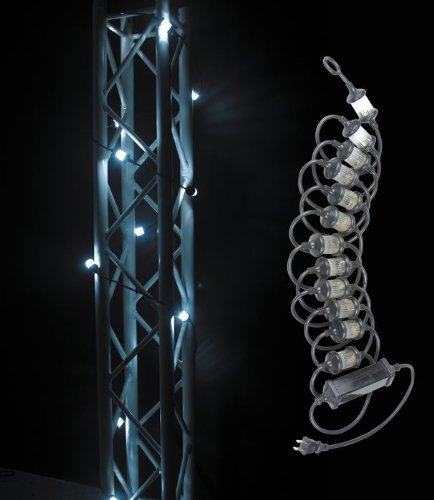 Great For: Bands Mobile Entertainers Retail Store Windows Parties Staging Halloween Features: User Friendly "plug and play" strobe lighting with 12 flash capsules Rainproof suitable for indoor or outdoor use Built-in "O" ring for easy hanging Flash Rate: 1 flash per second Specifications: Length: 15.5 feet / 4760mm Weight: 1.75 lbs. / 0.8 kgs. Lamp Life: 2,000 hours (average) Power Consumption: 45W Links: Product Video (QuickTime) Product Video (Windows Media)