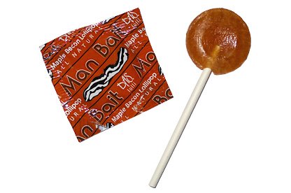 | 34 of 35 people found the following review helpful By s.reikler (New York, NY) - See all my reviews This review is from: Man Bait - Bacon and Maple Syrup Lollipop (1 lollipop) (Misc.) I bought these, and while I'm glad I tried them, I wouldn't ever buy them again.I'm serious about my bacon, and I've tried all three of the available maple bacon lollipops: Man Bait, Lollyphile, and Roni Sue, and of the three these are the last ones you should buy. They're tiny, taste nasty (both of the other two brands are delicious), and it's clear as to why they're the cheapest option. Google Roni Sue, a small company out of New York that infuses their maple bacon lollipops with tea, or Lollyphile, who makes giant lollipops that taste like maple and bacon. Both of them are more expensive, but real bacon freaks will be glad they went with quality. 11 of 14 people found the following review helpful By Amazon Verified Purchase This review is from: Man Bait - Bacon and Maple Syrup Lollipop (1 lollipop) (Misc.) The pic on this product is a little deceiving. If you order these you get 1 tiny lollipop. A waste of money if you ask me. The ad should state clearly that you are buying 1 lollipop. 2 of 3 people found the following review helpful By Amazon Verified Purchase This review is from: Man Bait - Bacon and Maple Syrup Lollipop (1 lollipop) (Misc.) These are good but not great. It would be nice if they were a bit larger. The other issue I had was that these seem to crumble easily, and the lollipop stick had fallen out of one that crumbled. I liked the different flavor though. |