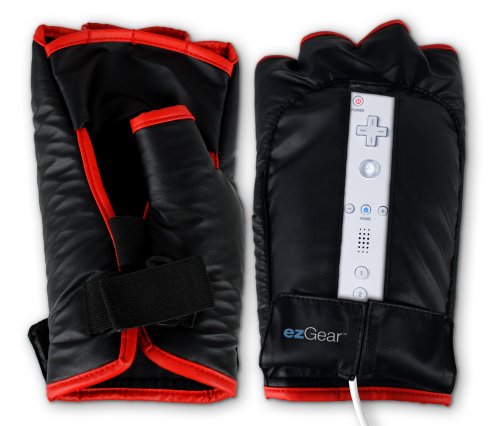 The ezGear for Wii Boxing Glove is the perfect companion to Wii Sports Boxing. Wear these gloves and you'll feel like you are right in the ring. The ezGear for Wii Boxing Glove is constructed of leather and specialized foam to simulate a real boxing glove. Elastic and Velcro straps keep the glove in place. The glove can be used two ways with the Wii System. Palm ¿ Put the gloves on and hold the Wii Remote Control and Numchuk in the palm of your hand Back of Glove ¿ Simply put the remote and numchuk into the pocket on the back of each glove, place the gloves on each hand and enjoy. For the lighter feel of a sparing glove, try the ezGear for Wii Lite Boxing Glove. The ezGear for Wii Boxing Gloves. Boxing made ez.